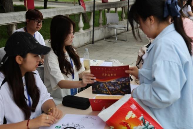 走进太阳成集团tyc122ccvip楼前的迎新广场,喷泉映入眼帘,为新生接风洗尘。新同学们纷纷在独具商公司特色的迎新标语和拱门前合影留念,留下与商公司的初见瞬间,成为迎新现场的亮眼风景。沿着“迎新路”前行,新同学们到达梦想终点,在“梦想投递站”前投下对自己未来四年计划的“许愿卡”。每个新同学眼里都星光熠熠、满怀期待,洋溢着青春的笑容。